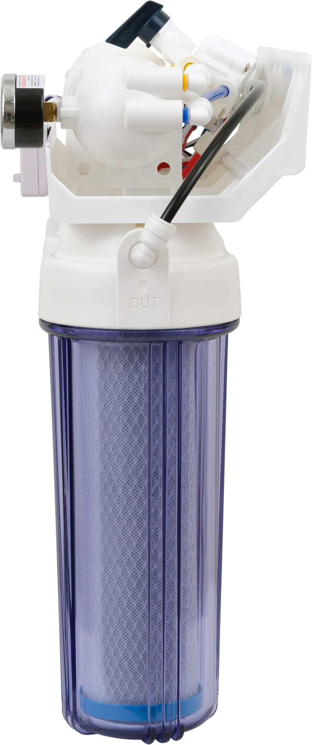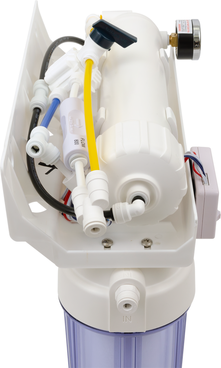 - Manual flush Assembly with In-line ball valve for manual flush to extend membrane life and prevent TDS Creep