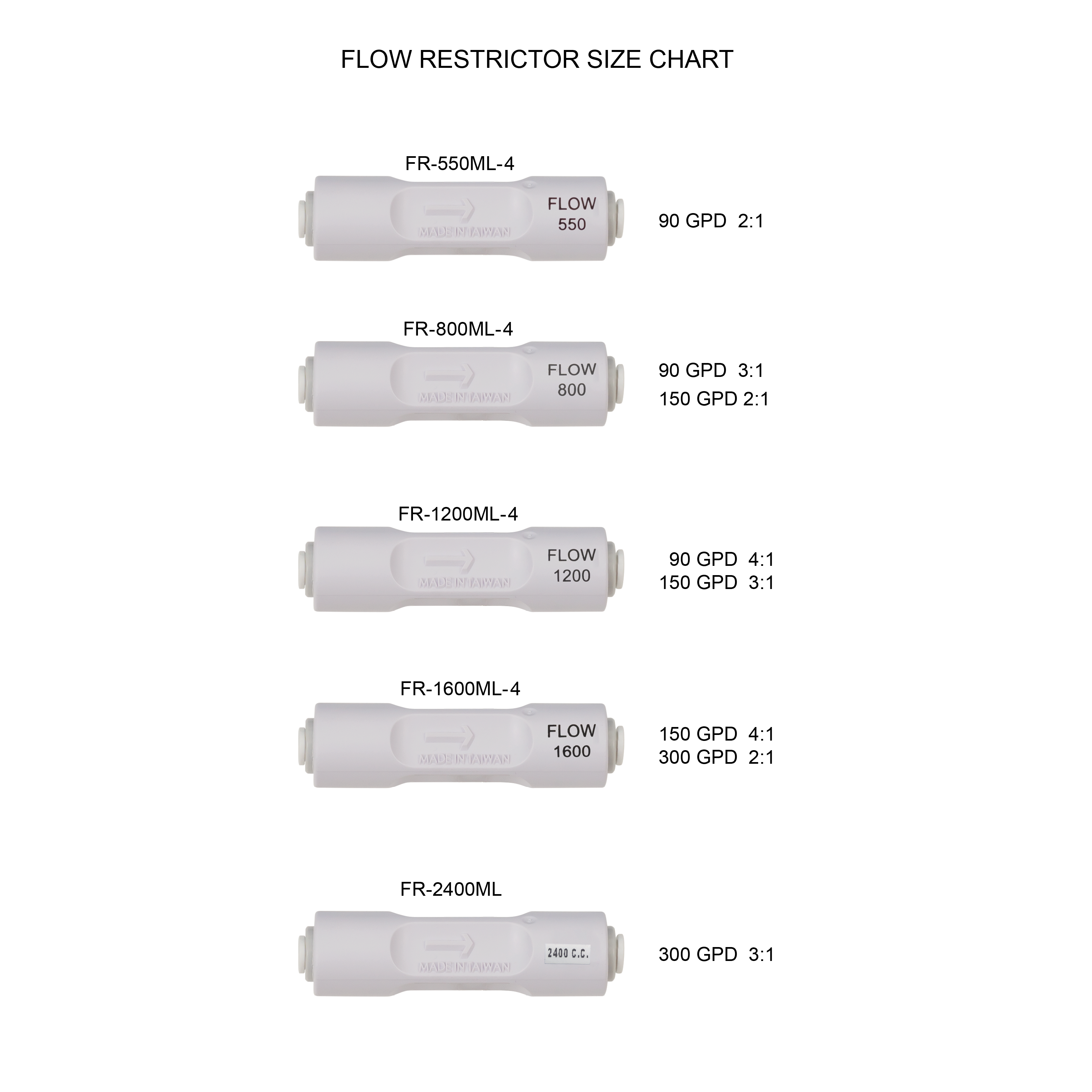 These Flow Restrictors simply connect to your same wastewater line using a piece of white tubing, and consistently match your production ratio without having to make adjustments.